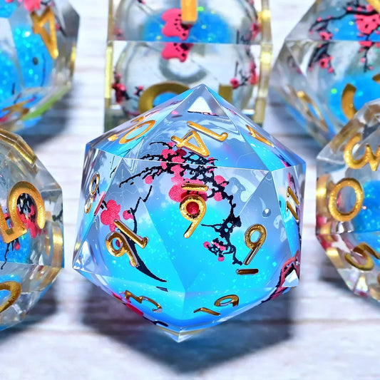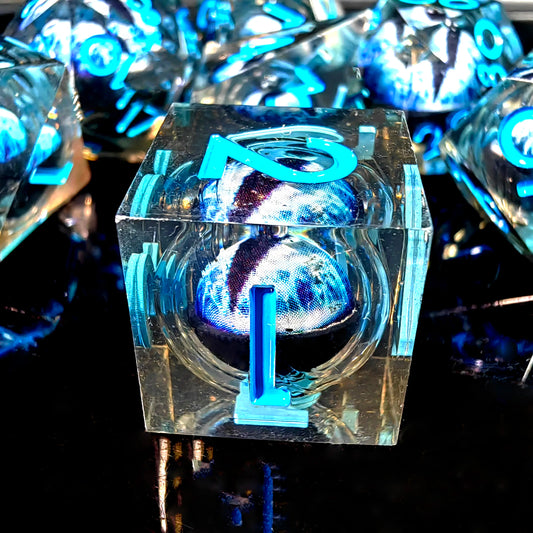 7-Piece Resin DnD Dice Set - Spinning Dragon Eye Core (Blue)