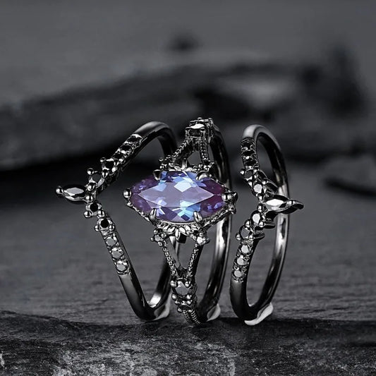 Black Stone Ring Set - Blue & Black Oval & Round Rings
