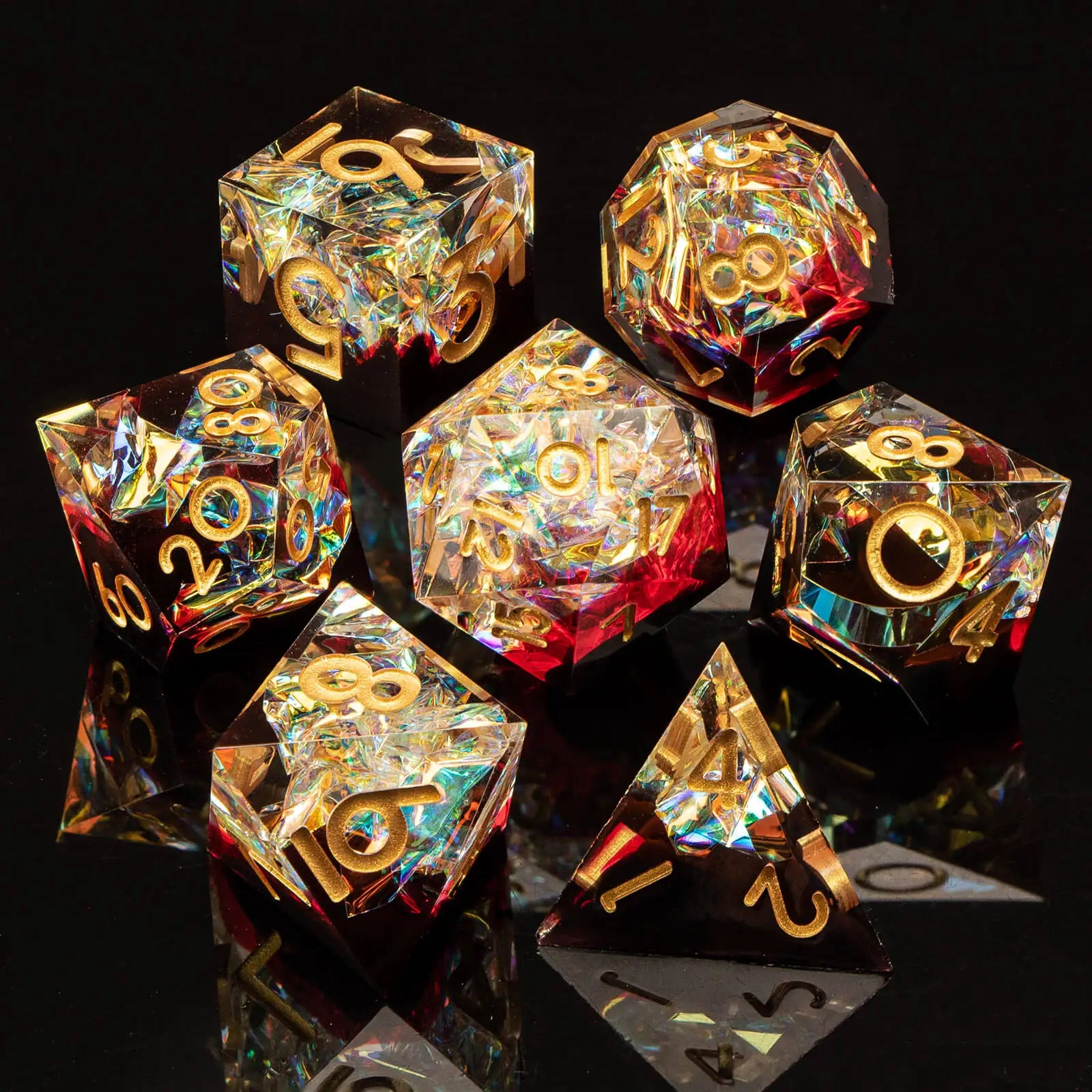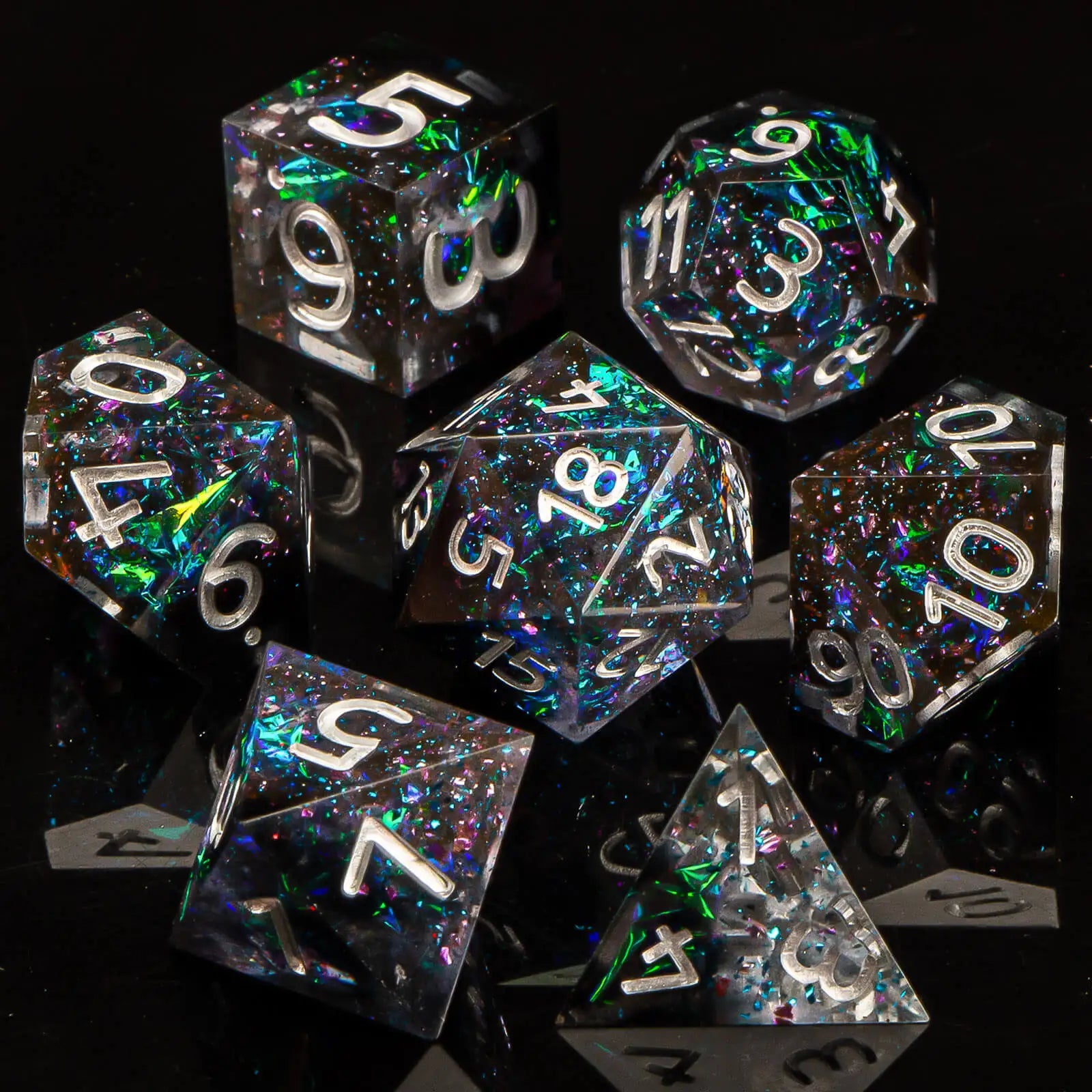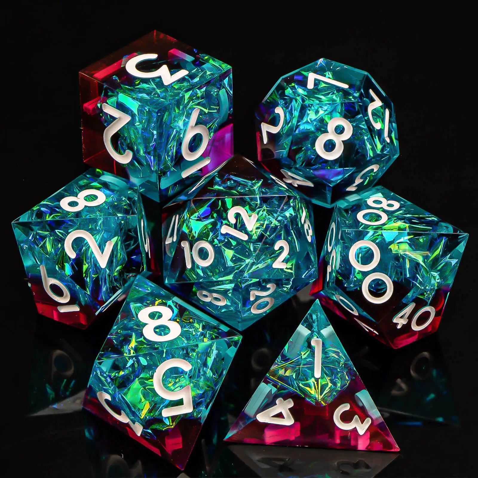 7-Piece Handmade Resin DnD Dice Set - Sharp Edge RPG Dice