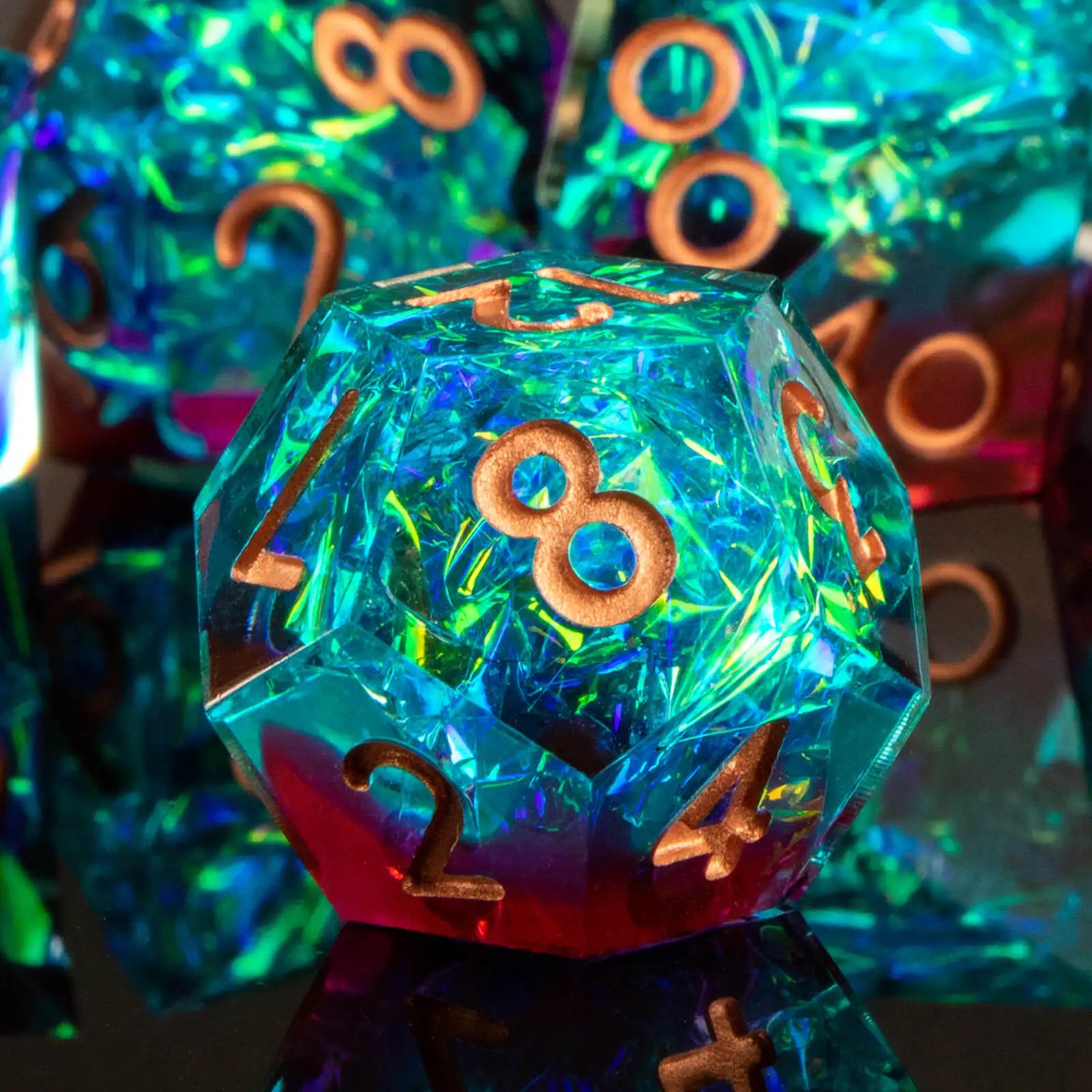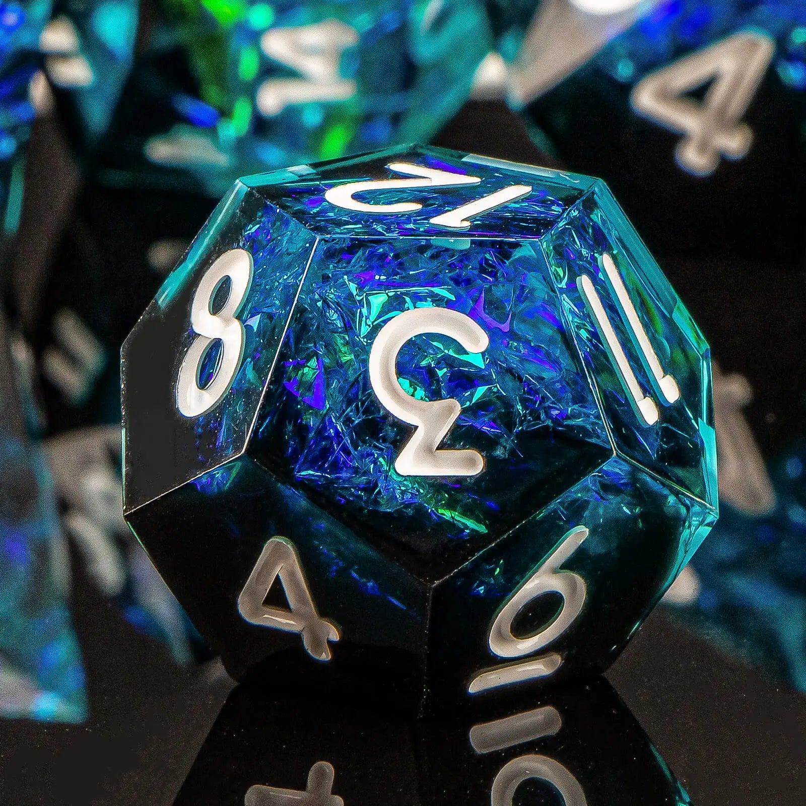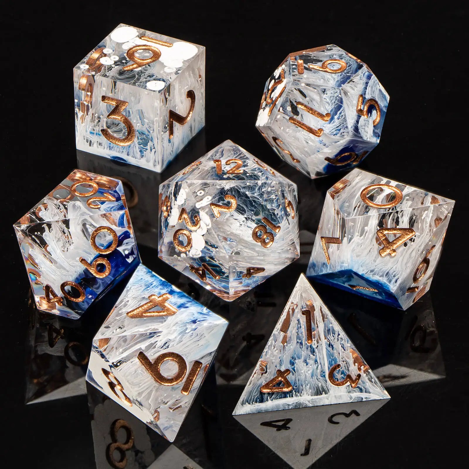 7-Piece Handmade Resin DnD Dice Set - Sharp Edge RPG Dice