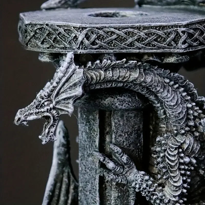 Transform your space with this mythical dragon candle holder resin set. Features intricately sculpted dragons coiling around gothic pillars. Hand-painted with dark textured finish for timeless gothic elegance. Perfect for fantasy lovers and gothic decor enthusiasts.